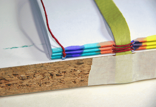 colores como soporte de costura y enlace de las tapas, tapas transparentes.